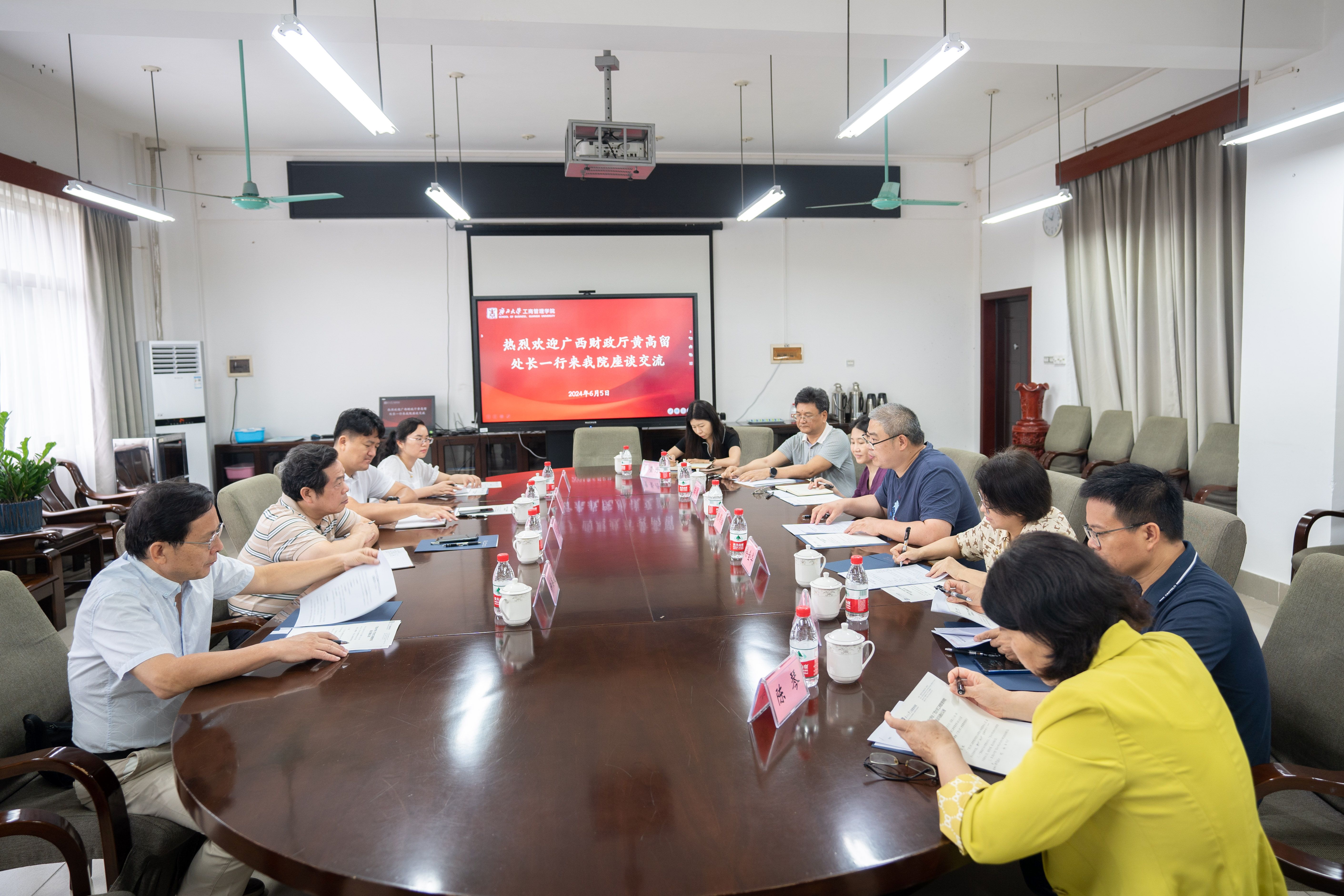 广西会计学会副秘书长钟英俊、广西财政厅会计管理处副处长李亮、广西会计学会工作人员潘玲丽陪同座谈。公司会计与财务金融系副主任徐全华、陈艳、覃朝勇和部分老师参加了座谈。