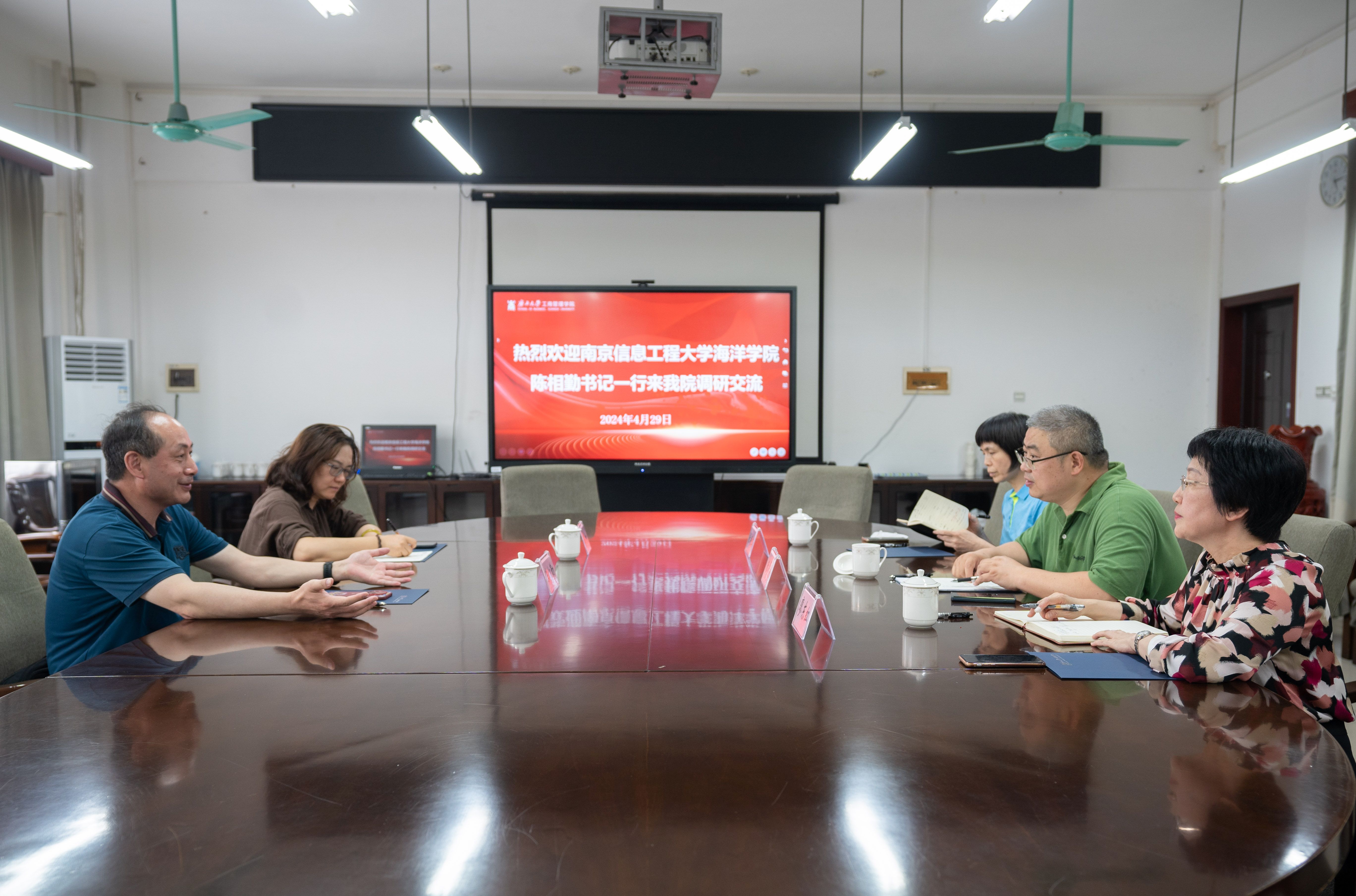 4月29日下午,南京信息工程大学海洋科学公司党委书记陈相勤,副书记、副经理石一到公司调研交流。公司党委副书记、经理朱帮助出席座谈会,副经理廖东红、专职辅导员张艳红陪同调研。
