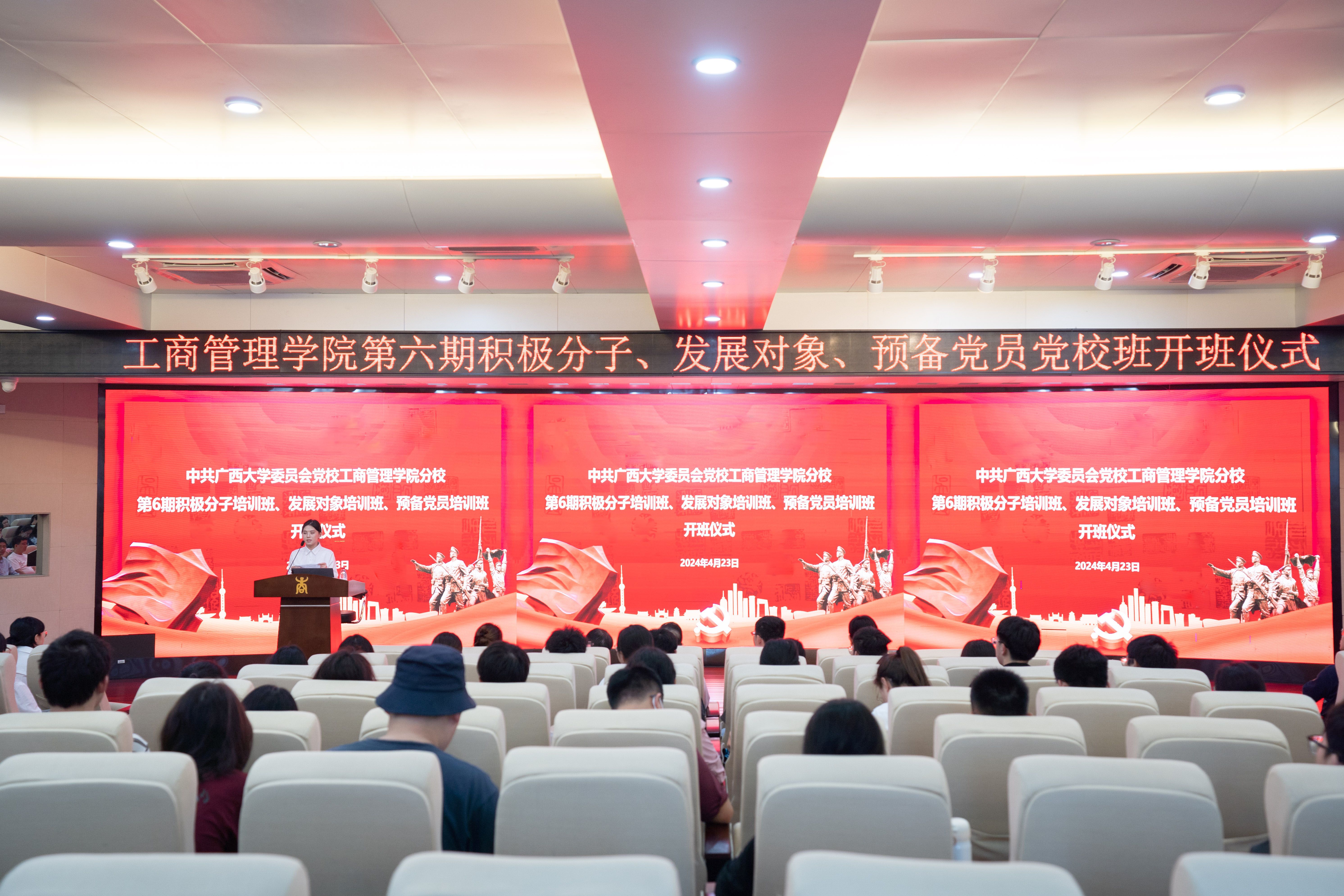4月23日下午,中共williamhill官网委员会党校英国威廉希尔公司分党校第六期党校班开班仪式在公司128报告厅举行。公司党委书记罗诚、党委副书记肖克宁出席开班仪式,组织员黄照温、辅导员王乐、郁文丹以及来自入党积极分子党校班、发展对象党校班和预备党员党校班的学员代表共同参加了开班仪式。