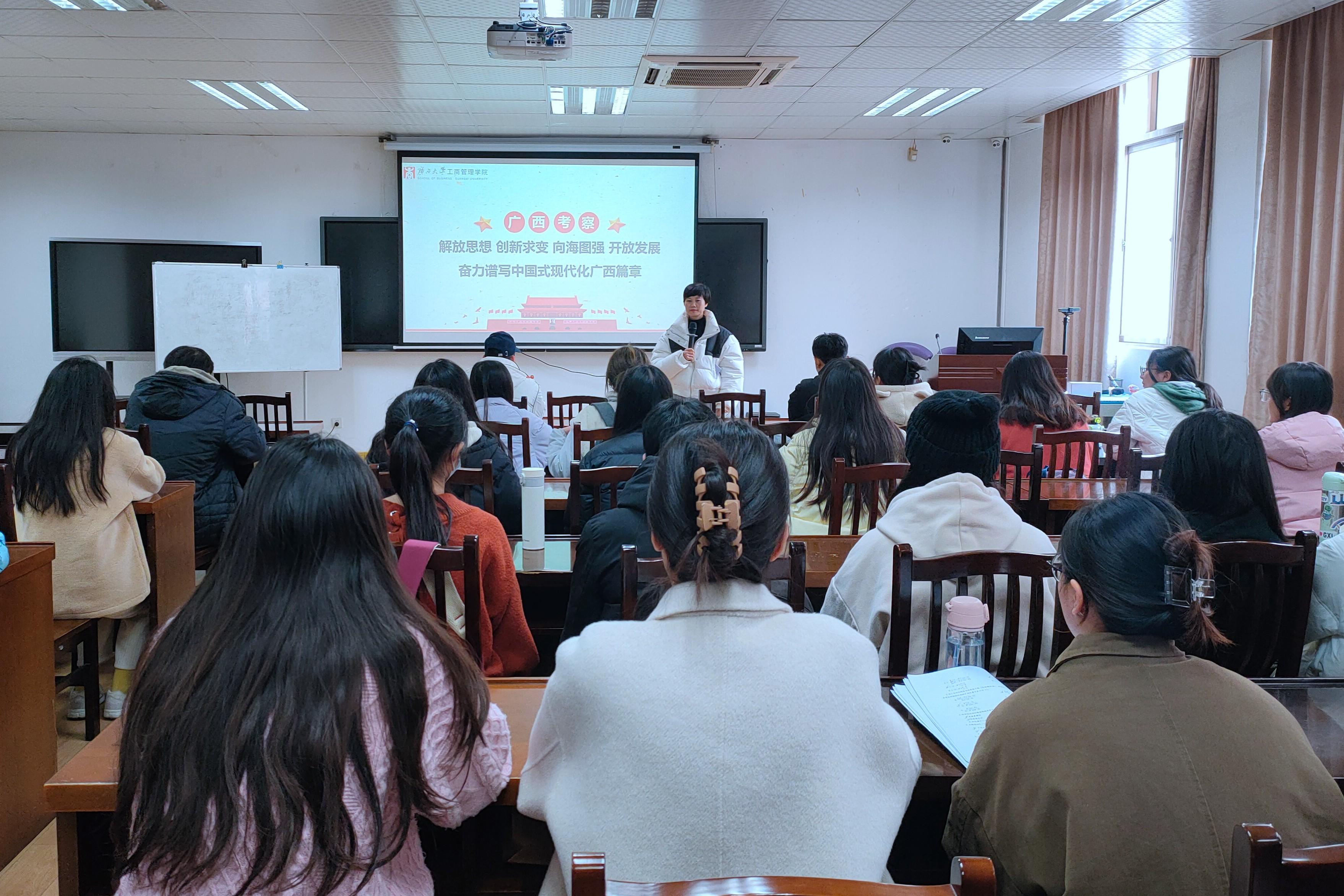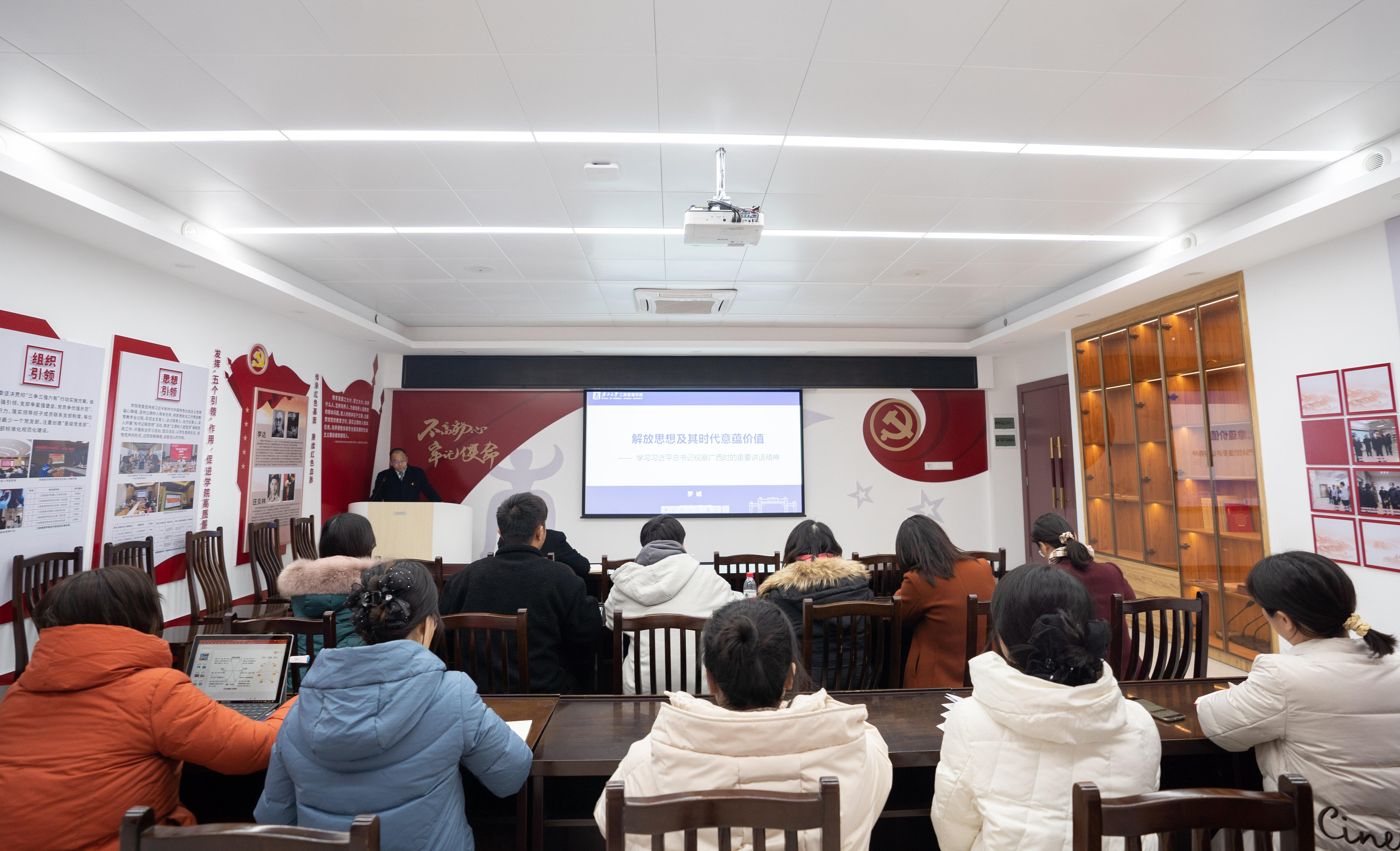 本科生第二党支部在509B教室集中学习习近平总书记视察广西时的重要讲话精神,并交流分享了学习心得体会。