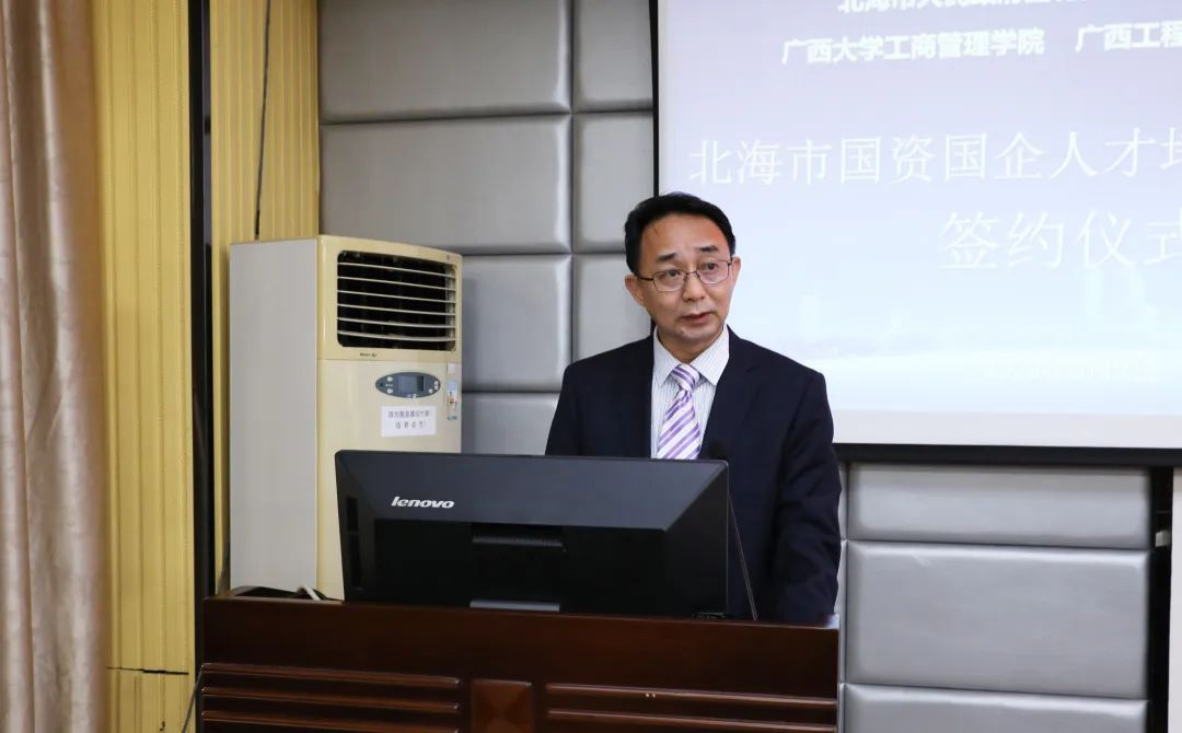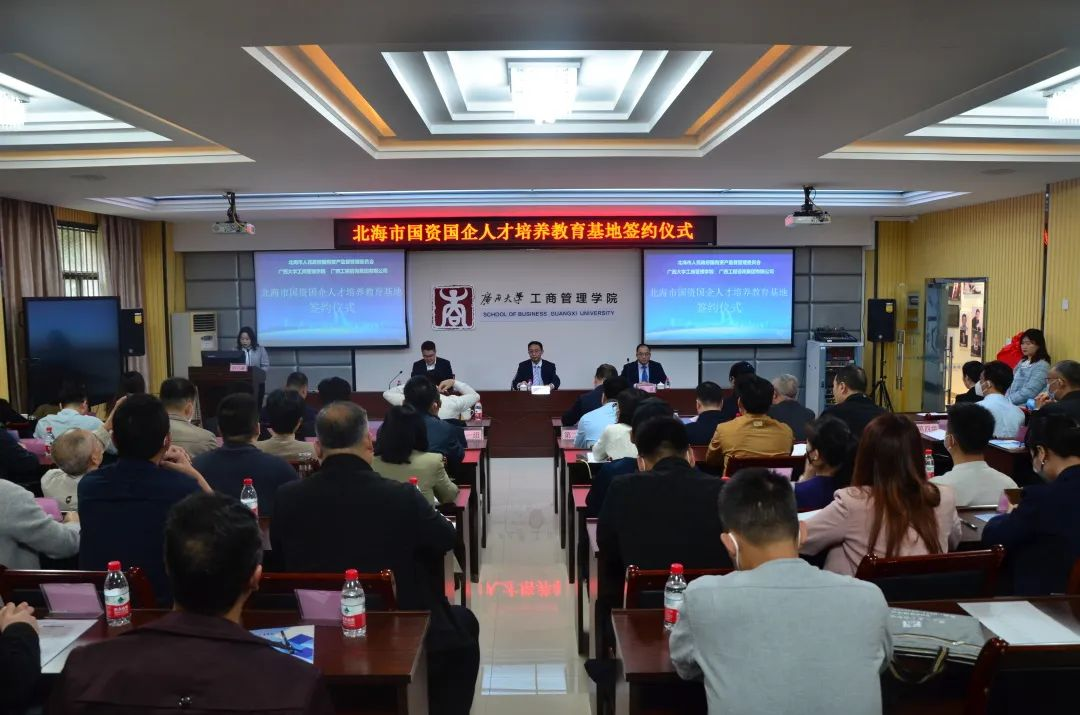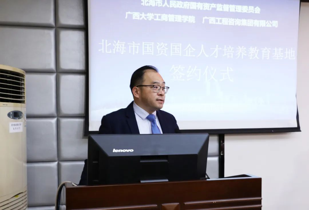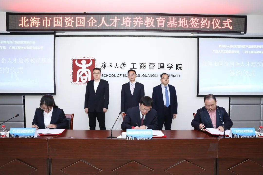 北海市国资委副主任农启智,williamhill英国官网副经理刘民坤,广西工程咨询集团有限公司党委副书记左俊兰作为签约代表签署《北海市国资国企人才培养教育基地共建合作框架协议书》。