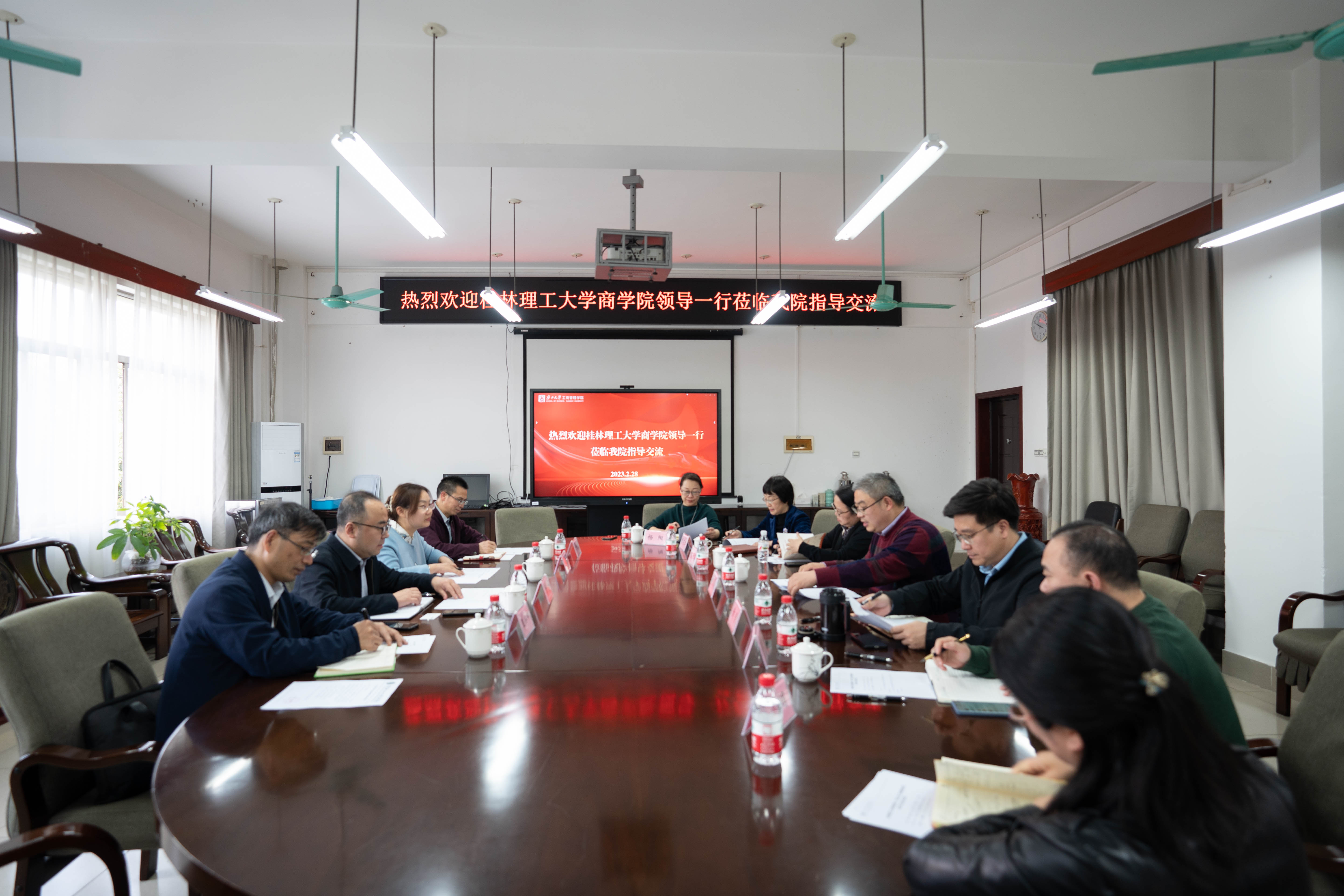桂林理工大学商公司党委副书记沈菲菲,副经理王兴中、卢智增一同调研。公司工会主席、研究生管理中心常务副主任叶映,党政办主任杨阳,企业管理系副主任彭娟参加了座谈会。