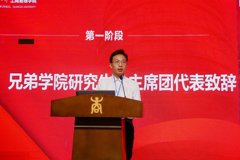 经济公司/中国-东盟金融合作公司研究生会执行主席谯显迪、williamhill官网研究生会主席团代表邹阳分别代表兄弟公司研究生会主席团、williamhill官网研究生会主席团对大会的顺利召开表示祝贺。