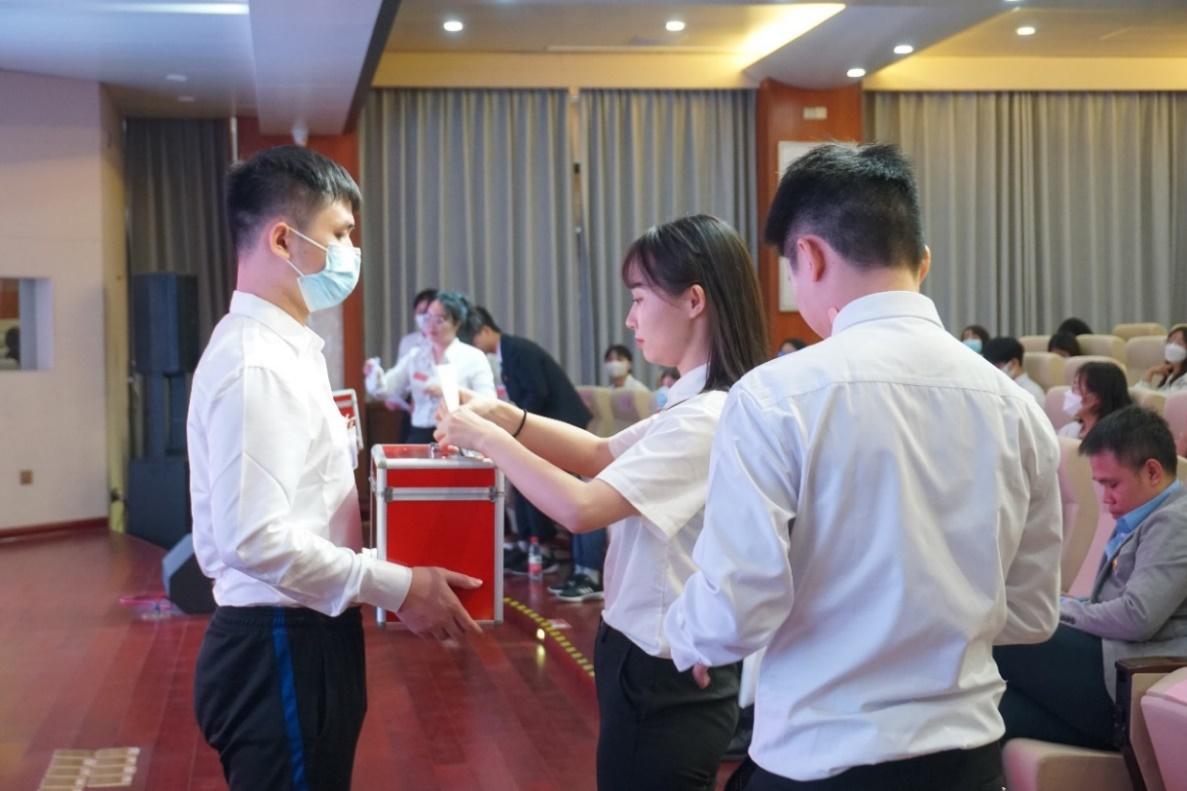随后,谢程同学宣读候选人信息,候选人分别亮相。参会代表仔细阅读候选人个人资料后,认真填写选票。各班代表团依次进行投票,选票确认上交完毕后,由监票人和计票人移步计票室进行计票工作。最终选举产生了翟艳洁、吕毅、唐子微为williamhill英国官网第二届研究生主席团成员。