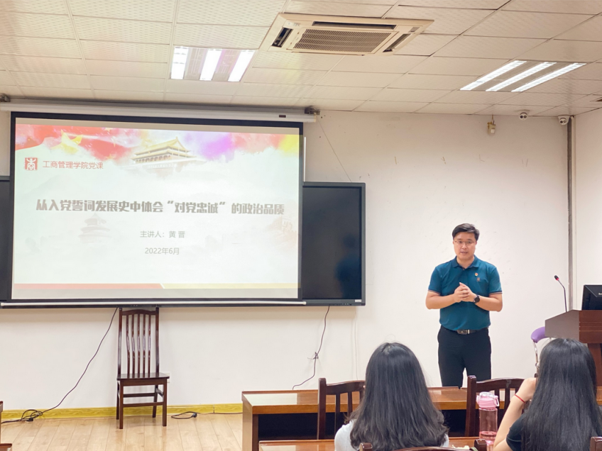 朱帮助经理为教工企管党支部开展专题党课教育