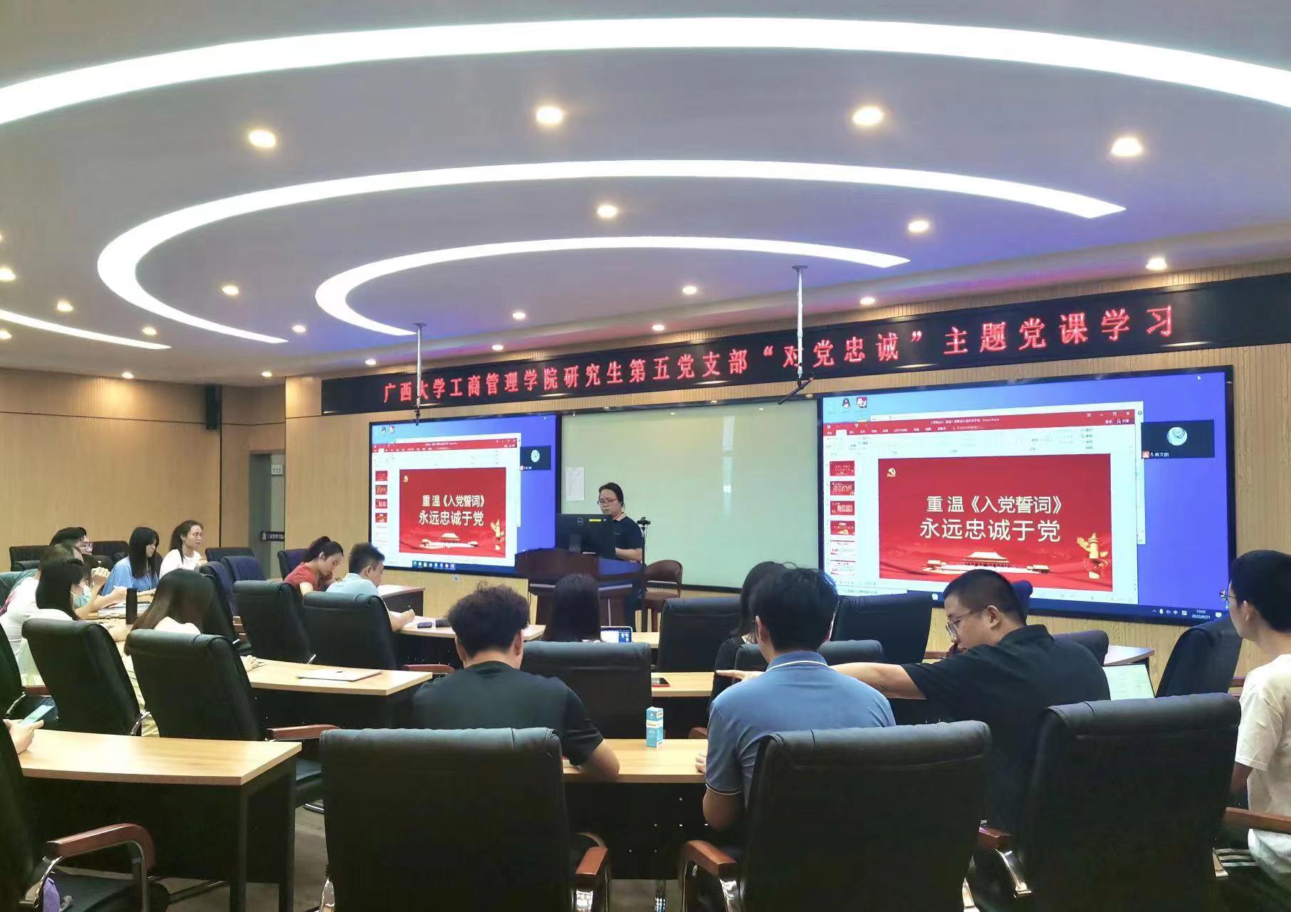 奋斗百年路,忠诚印寸心。习近平总书记强调:“我们党一路走来,经历了无数艰险和磨难,但任何困难都没有压垮我们,任何敌人都没能打倒我们,靠的就是千千万万党员的忠诚。”对党忠诚,早已融入我们党的精神血脉;对党忠诚,必须一心一意一以贯之,必须表里如一知行合一,任何时候任何情况下都不改其心,不移其志,不毁其节。此次公司党委通过讲授“对党忠诚”专题党课为切入点,深入开展“党课开讲啦”活动,使师生党员进一步聚焦迎接党的二十大胜利召开和学习宣传贯彻党的二十大精神主线,更好地服务推进新一轮“双一流”建设、实现高质量发展等公司中心工作。党员们纷纷表示,一定会弘扬“创新创造、奋勇争先、全面一流”的williamhill官网“双一流”精神,为凝心聚力建设新时代中国特色社会主义壮美广西作出西大贡献,把建设不负当年、奋进新时代的好大学推向新高度,以实际行动迎接党的二十大胜利召开。