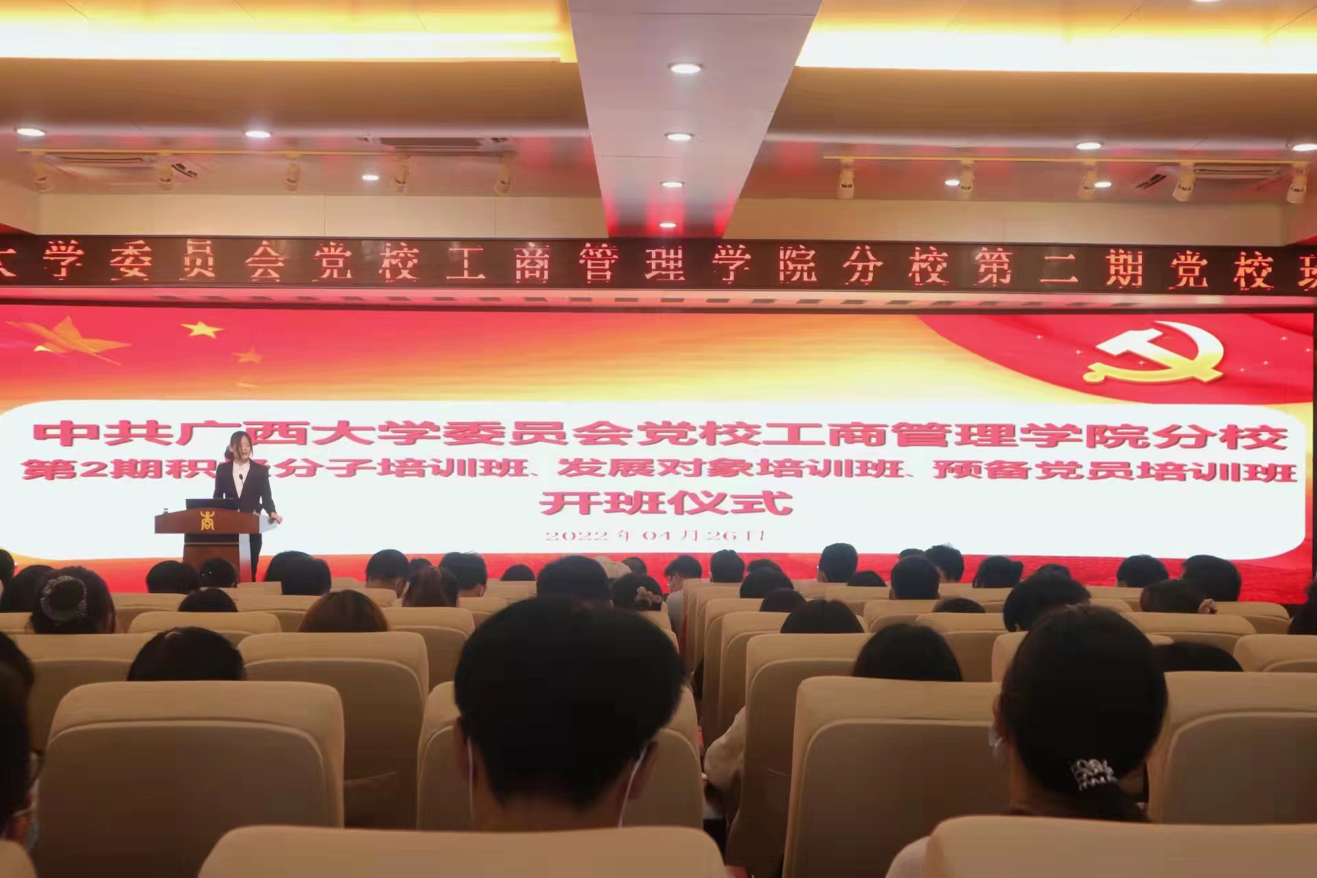 4月26日下午,中共williamhill官网委员会党校英国威廉希尔公司分党校第二期党校班开班仪式在128报告厅隆重举行。公司党委书记罗诚、党委副书记黄晋,专职组织员黄照温、团委书记马丽娟、团委副书记岑汉成、辅导员冯莎莎,以及来自入党积极分子党校班、发展对象党校班和预备党员党校班的学员代表共同参加了开班仪式。