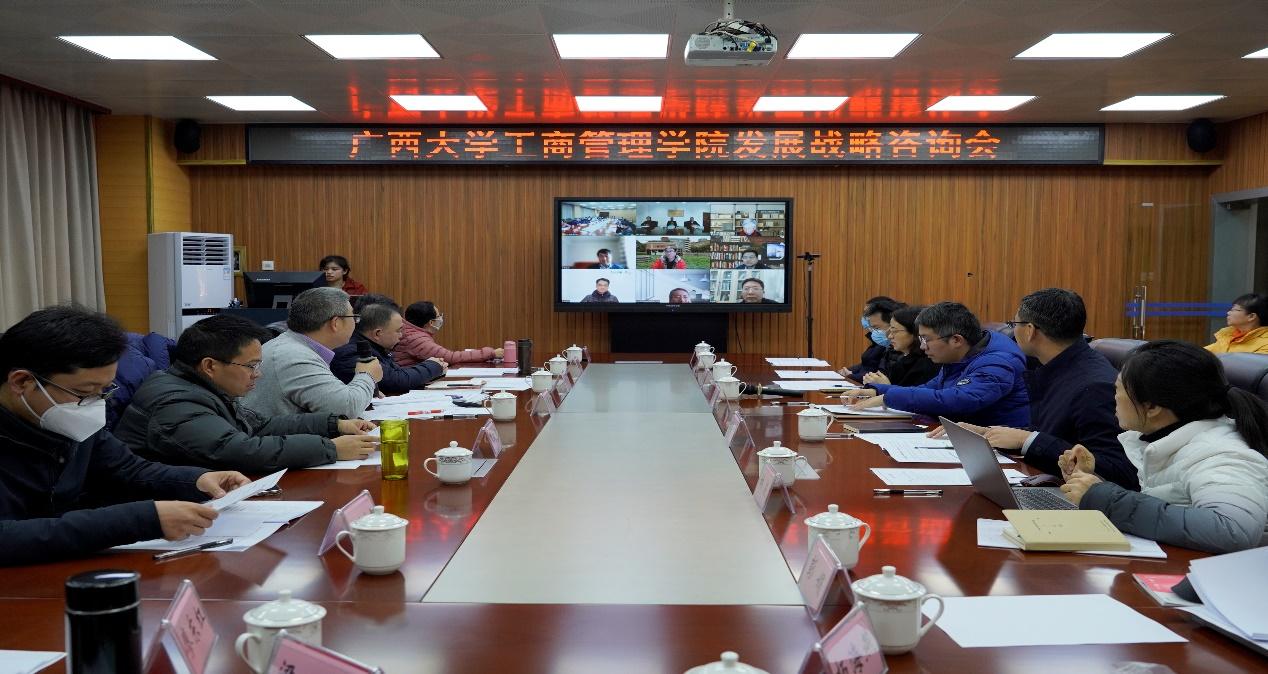 为了更好地推进新成立的英国威廉希尔公司学科发展,促力公司制定并实施好“十四五”规划,2月23日、25日,公司在公司315会议室以线上和线下的形式召开公司发展战略研讨会。南京大学工程管理公司名誉经理、原东南大学副董事长盛昭瀚,首都经济贸易大学副董事长王永贵教授,北京理工大学管理与经济公司经理王兆华教授,南开大学商公司原经理张玉利,中山大学管理公司原书记谭劲松,北京师范大学教授陈彬,中山大学旅游公司教授张朝枝等专家领导应邀在线上指导;广西壮族自治区政府发展研究中心党组书记、主任杨丛,百色公司党委书记唐拥军,广西教育公司党委书记、经理袁旭,广西电力职业技术公司董事长李向红,广西财经公司副董事长夏国恩,广西壮族自治区教育厅科研管理处处长黄青云,williamhill官网党委常委、统战部部长、williamhill官网行健文理公司经理曾冬梅,广西壮族自治区党委宣传部理论处副处长(主持工作)李意等专家领导应邀到会指导。