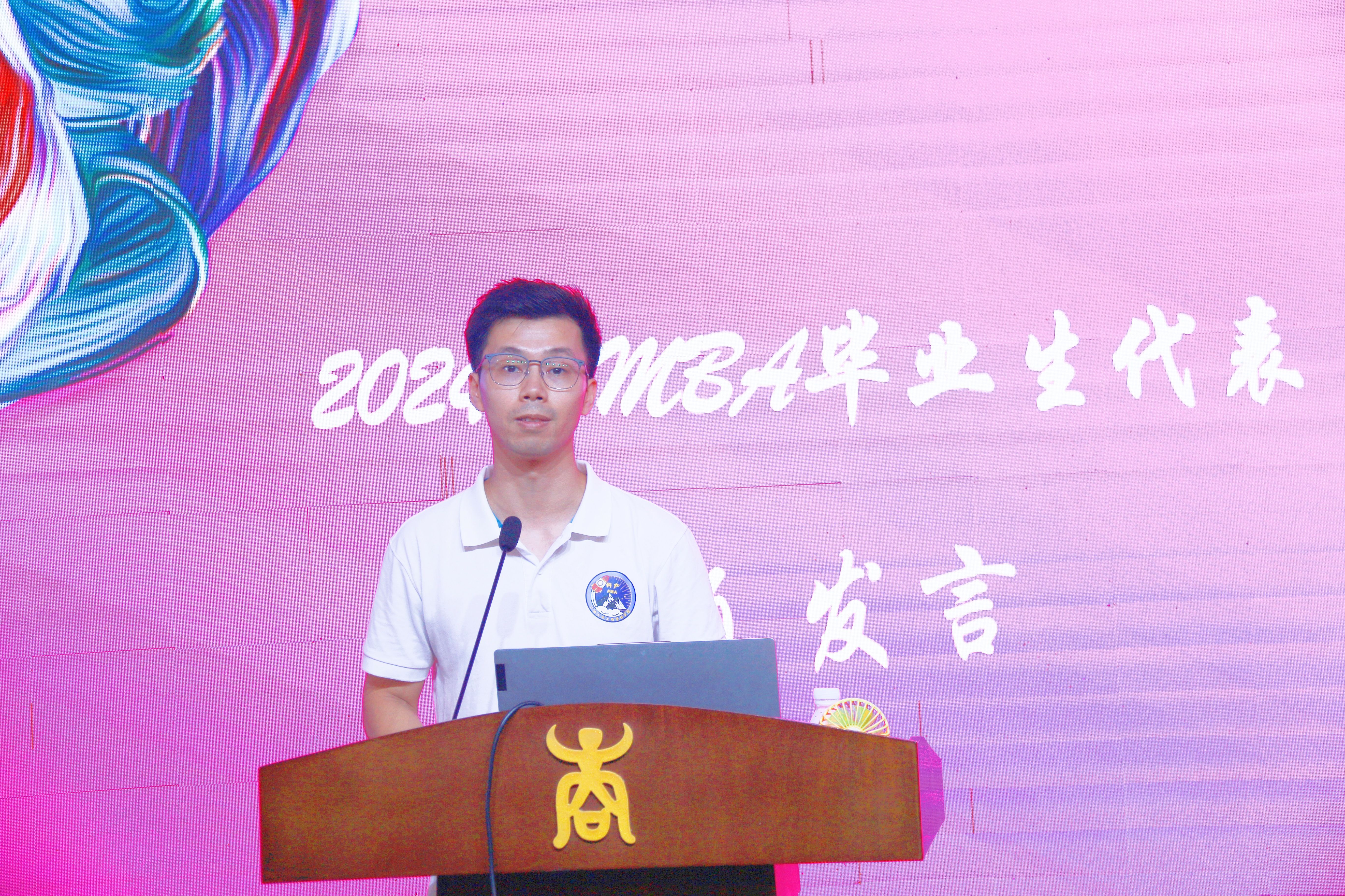 教师代表梁世昌副教授表达了对毕业生们的殷切期盼,希望MBA学子们树立理想,拥抱时代,对标先进,积极进取。祝愿同学们未来在各自领域发光发热,同时保持对知识的追求和对生活的热爱。