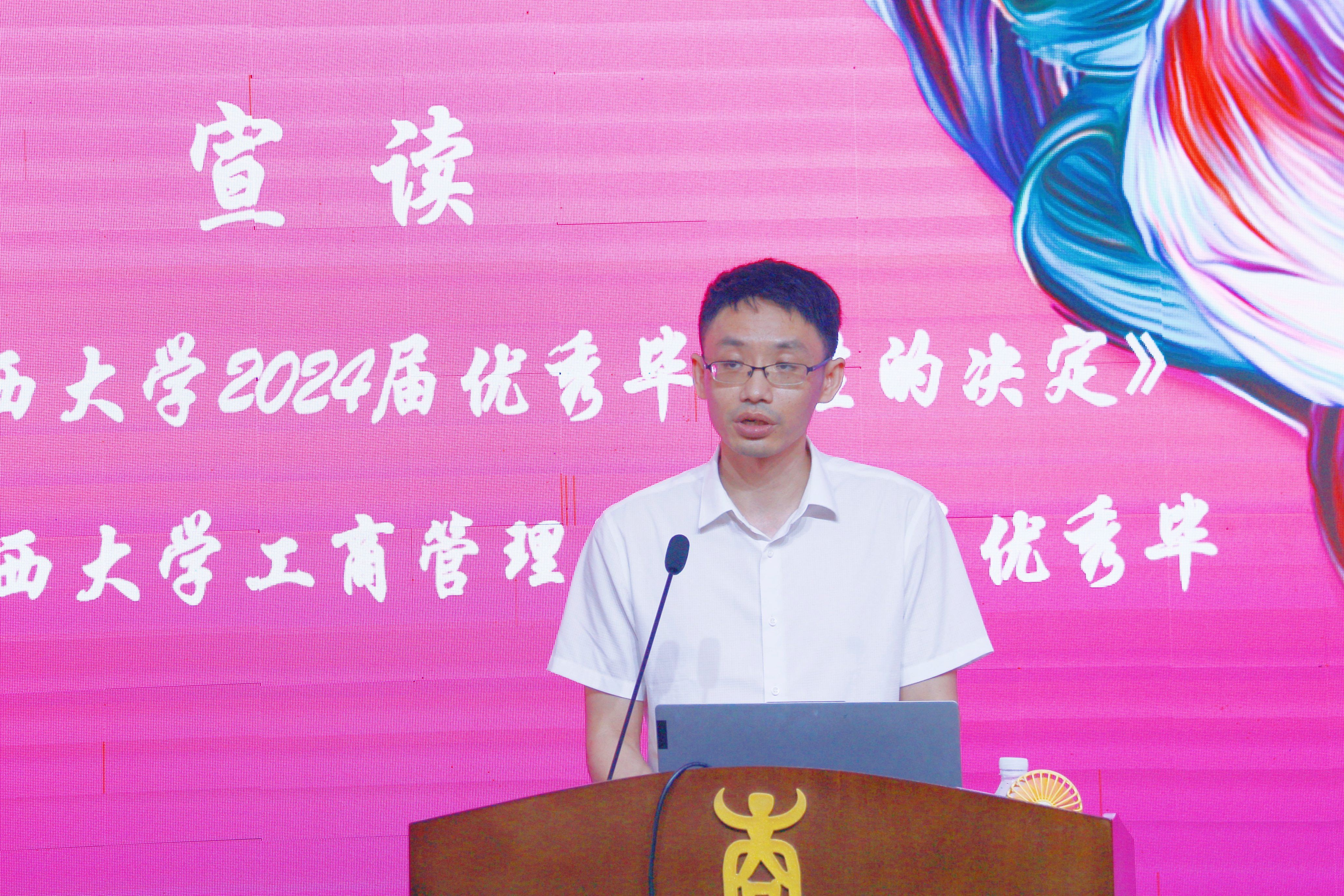 肖克宁副书记为被评为“2024年最受欢迎MBA任课教师”的阎世平老师、曹平老师和刘会民老师颁发证书,并宣读了《关于表彰williamhill官网2024届优秀毕业生的决定》《关于表彰williamhill英国官网2024届优秀毕业生的决定》。在热烈的掌声中,院领导为获奖员工代表颁发证书。
