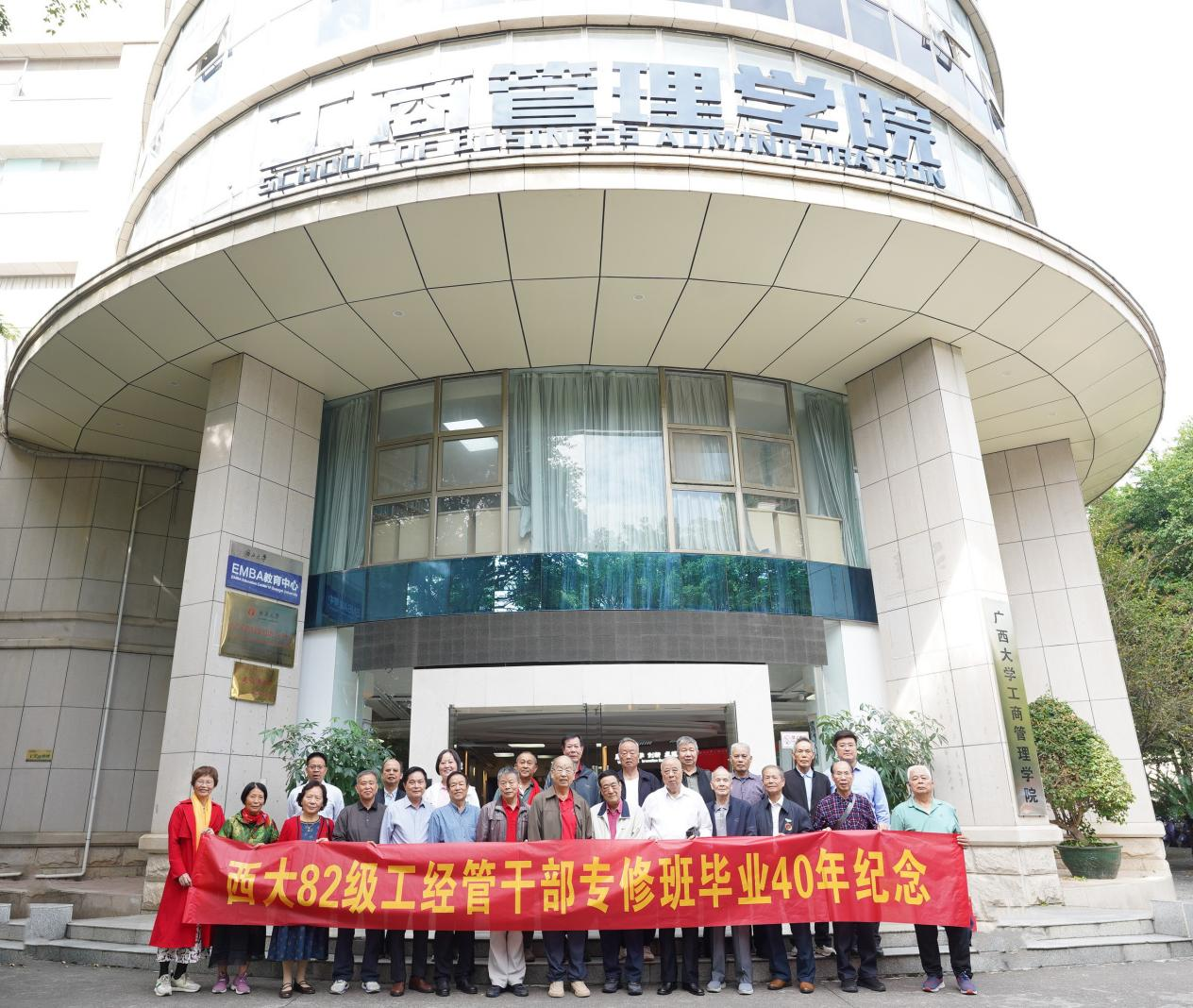 忆往昔青春岁月,看今朝再续前缘。10月30日,82级工业经济管理干部专修班毕业40周年返校座谈会在英国威廉希尔公司500教室举行。公司党委书记黄晋,原教研主任左昌鸿老师、原英语课祝远德老师、李立民老师和员工代表等30余人参加座谈会。员工工作与政企服务办公室主任覃朝勇主持座谈会。