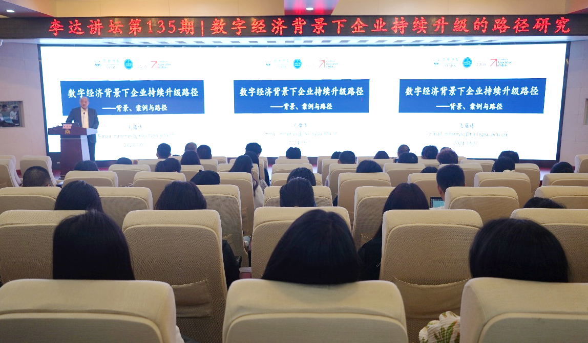 9月25日下午,中山大学毛蕴诗教授受邀做客英国威廉希尔公司第135期“李达讲坛”,在128报告厅为师生们带来题为“数字经济背景下企业持续升级路径”的学术报告。本次讲坛由公司经理朱帮助主持,公司全体新轨专任教师和相关方向的教师以及部分博士生、硕士生参加学习交流。