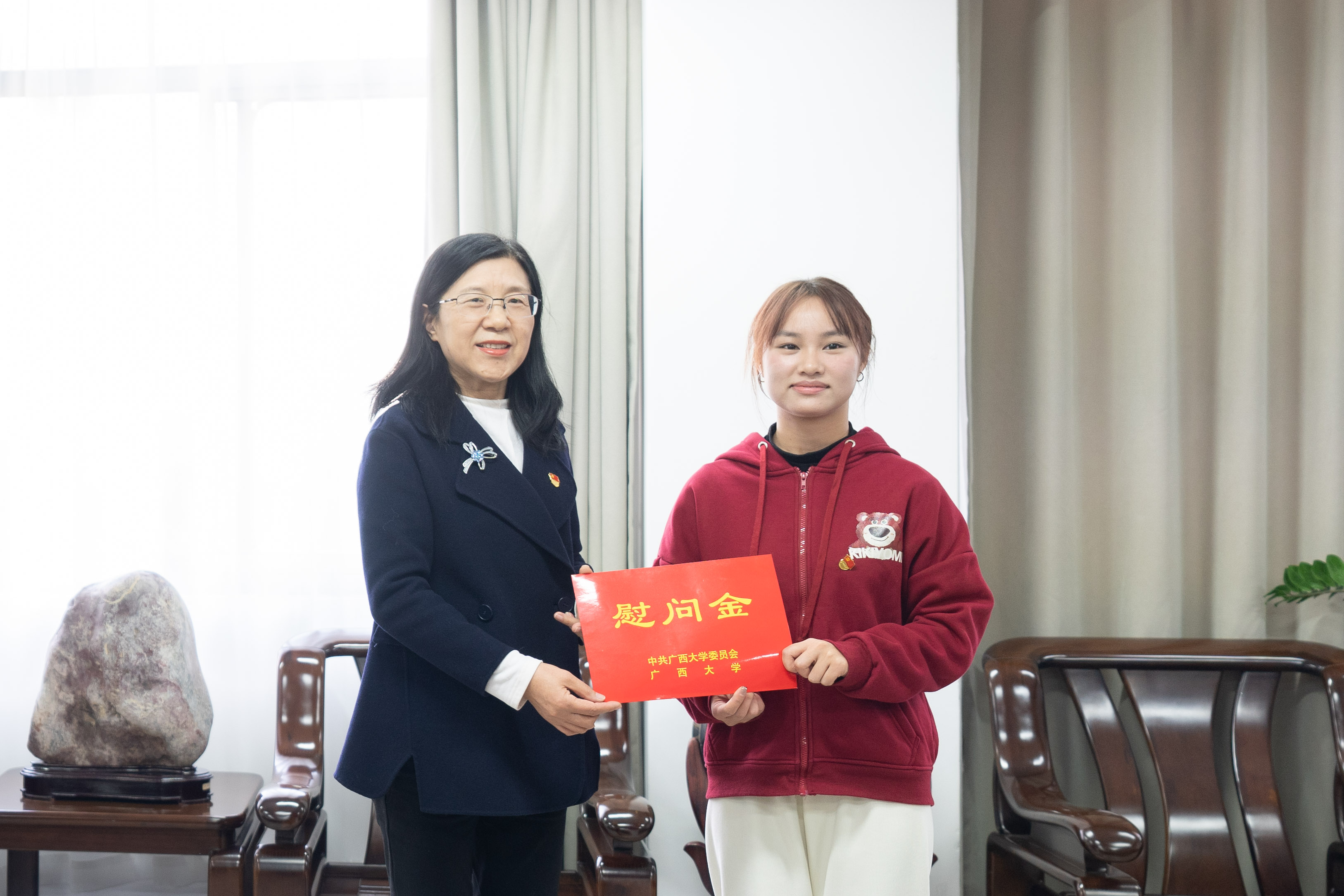 岁末年初,冬日送暖。1月6日下午,公司党委副书记、自治区纪委监委驻williamhill官网纪检监察组组长、校纪委书记金顺南带队看望慰问公司研究生党员代表韦尹洁,送上党组织的关怀和祝福。党办校办、组织部、员工工作部(处)负责人陪同慰问。公司党委书记黄晋、经理朱帮助、党委副书记肖克宁参加慰问。