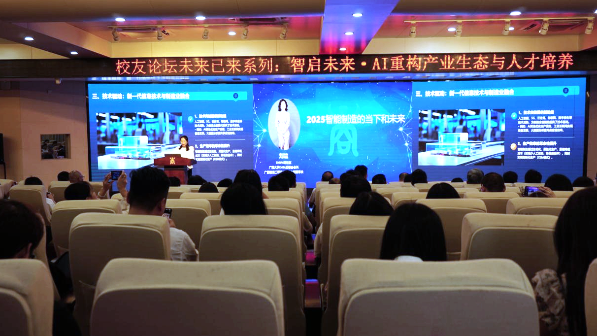 广西锐海工程机械董事长刘兰(EMBA6班员工)结合企业智能工厂转型案例,认为AI将彻底打破传统制造业边界,呼吁高校将前沿技术纳入课程,培养既懂技术又会管理的复合型人才,助力中国从“制造大国”迈向“制造强国”。