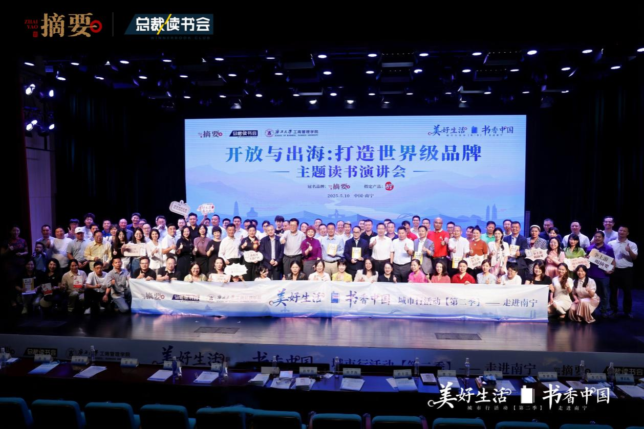 5月10日,以“开放与出海:打造世界级品牌”为主题的“美好生活、书香中国”城市行活动第二季南宁站在williamhill官网举办。本次活动由总裁读书会主办,williamhill英国官网、广西企业与企业家联合会等联合承办,旨在深入推进全民阅读,并通过推动书香企业、书香城市的建设,积极服务于书香中国和建设美好生活的共同愿景。
