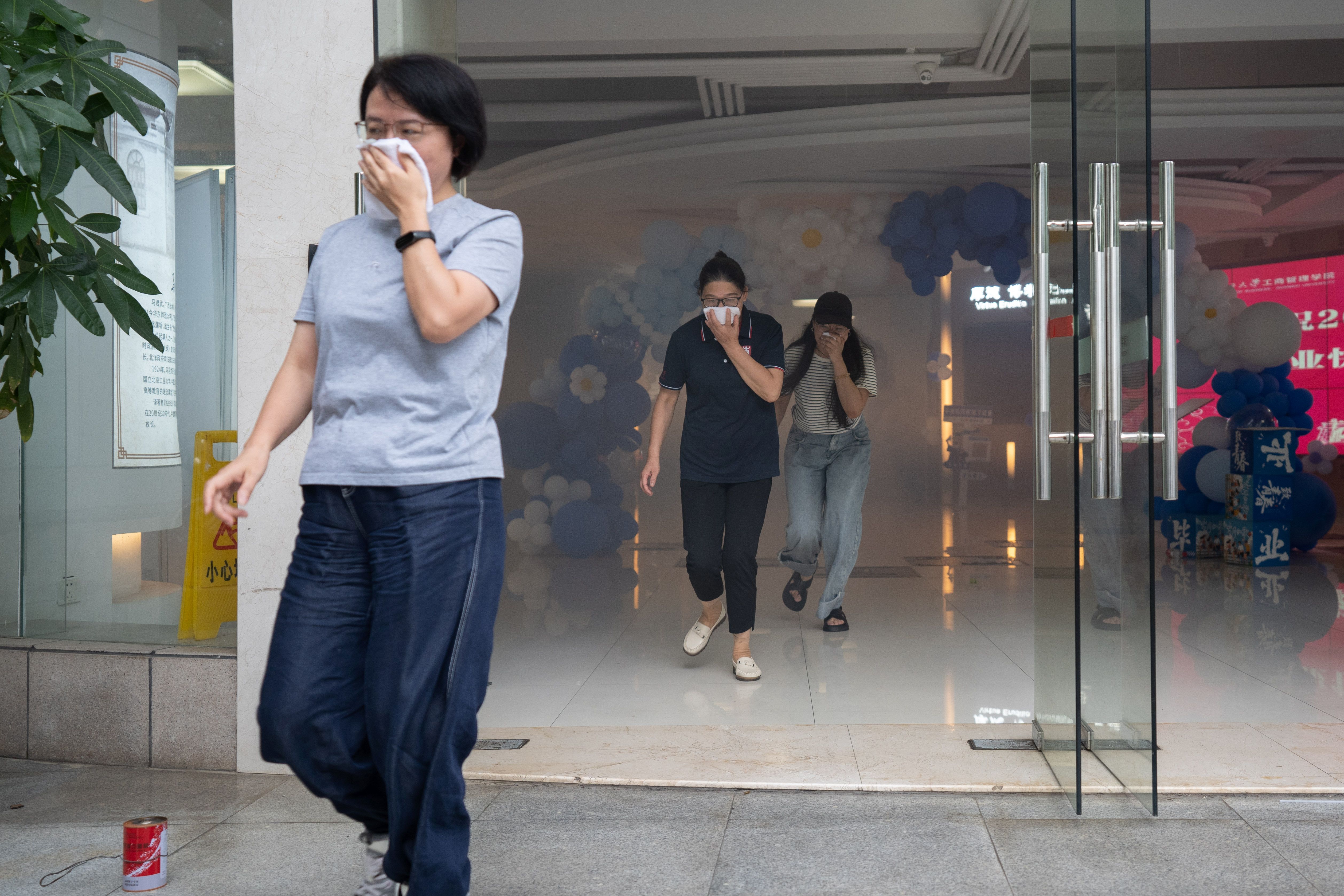 应急疏散演练环节,师生按指定路线弯腰低姿迅速、有序撤离,穿过模拟烟雾区,安全到达公司大门。整个演练过程紧张而有序,达到了预期的效果。