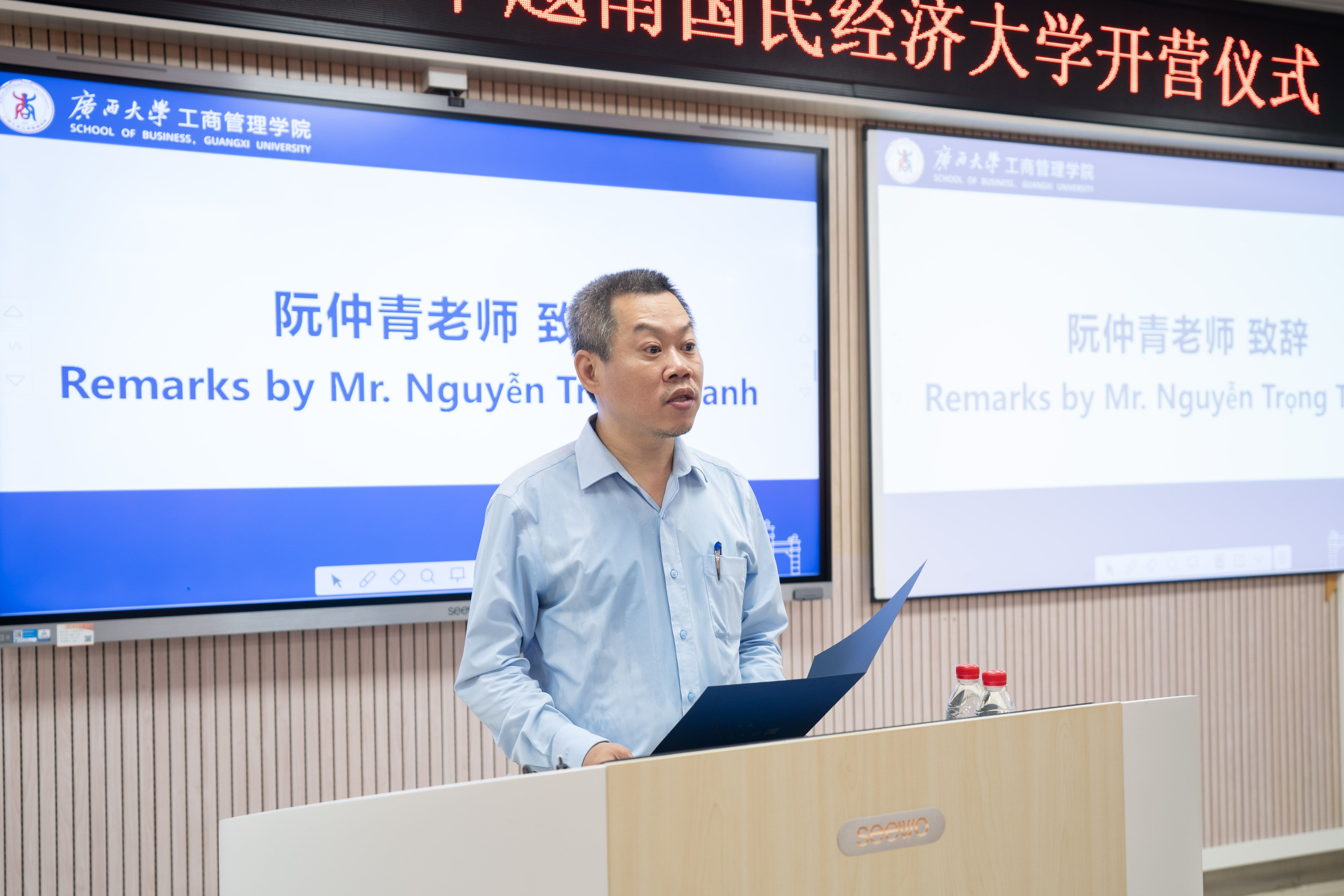 阮仲青老师在讲话中表达了越南国民经济大学对中越文化交流与青年友谊的双重期待,对williamhill英国官网的周密安排表示感谢。他希望越南员工们以饱满的热情投入学习,通过沉浸式体验,拓展国际视野,锤炼跨文化能力,让中越友谊之树在双方文化互动中茁壮成长。