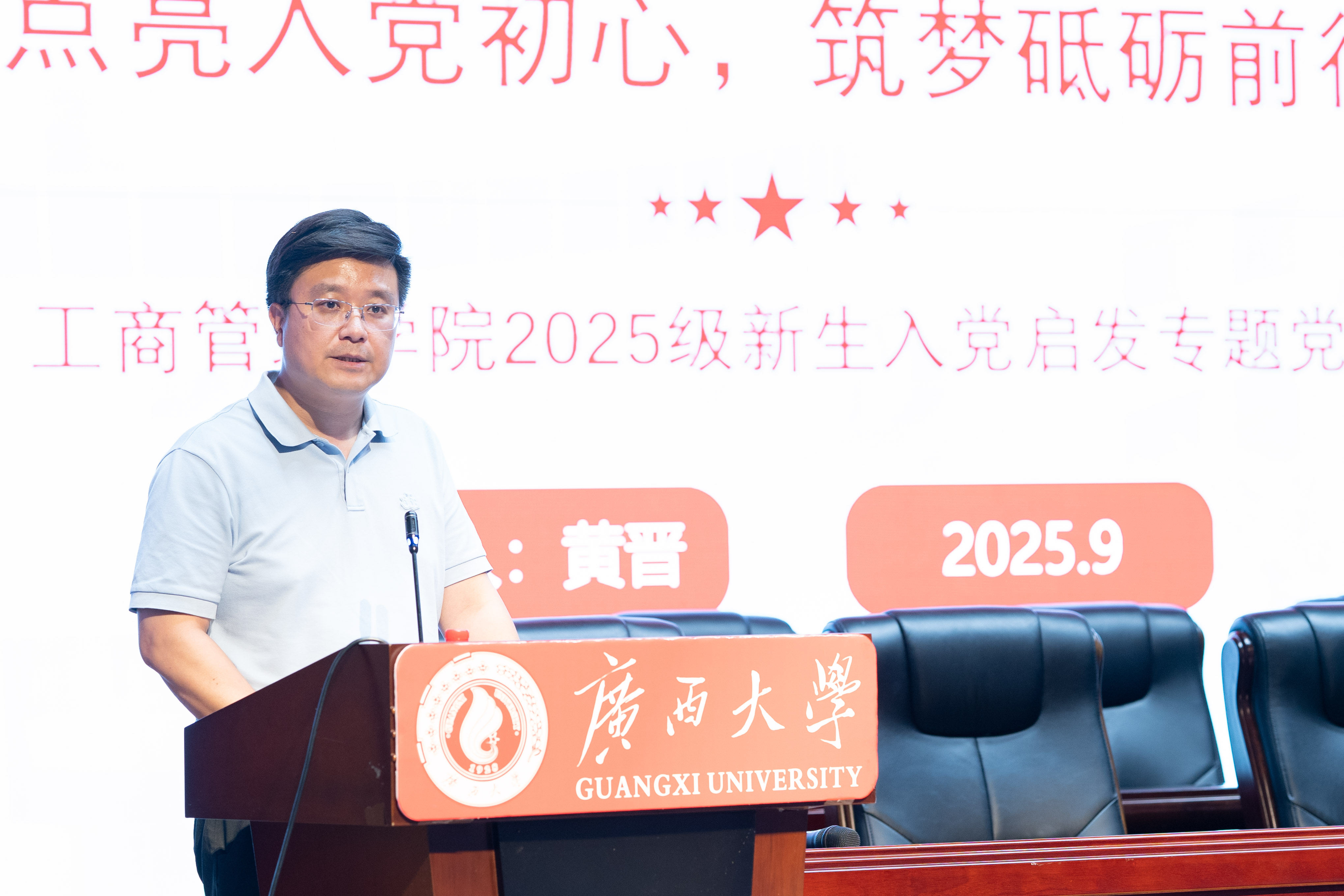 课上,黄晋围绕中国共产党的性质、宗旨、使命以及指导思想和行动指南,深入阐释了党始终坚持以人民为中心的发展思想,强调共产党员不仅是一种身份,更是一份责任与担当。他以公司优秀员工陈允杰为例,引导新生思考“为什么申请加入中国共产党”,激励新生将个人理想融入党和国家事业之中。黄晋指出,入党是一项严肃而庄重的选择,必须端正动机、坚定信念,在思想上先行入党,在实践中锤炼品格。
