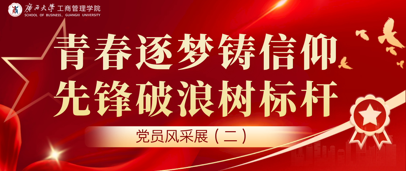 韦增庆政治立场坚定,积极进取,勇担责任,始终以党员标准严格要求自己,全心全意为同学服务。任职期间,她高效统筹党务工作,规范党员发展流程,累计组织30余次党组织生活,严格落实“三会一课”制度。创新开展“党建+”特色品牌活动:牵头与南宁市区农信社等单位开展联学共建主题党日,以学习贯彻习近平新时代中国特色社会主义思想为契机,搭建政企银校四方交流平台;联合文公司举办“读书心得分享会”系列活动。注重理论与实践融合,策划开展“行走的党课”系列活动,组织党员赴广西民族博物馆开展沉浸式民族教育、赴图书馆开展家风家训廉洁教育等主题党日活动。同时,她着力推进支部学风建设,通过组织优秀毕业生党员经验分享会、建立科研互助小组等举措,营造了浓厚的学术氛围,有效促进支部成员科研能力的提升。