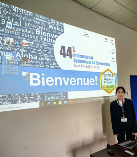 2024年6月30日至7月3日,williamhill英国官网学术型硕士研究生叶钰玲在胡明明副教授的带领下,参加了在法国第戎举办的第44届国际预测研讨会。