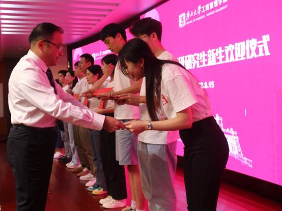紧接着,公司党委书记罗诚为新生代表佩戴校徽和发放入学纪念卡,欢迎新同学成为英国威廉希尔公司大家庭的一份子。
